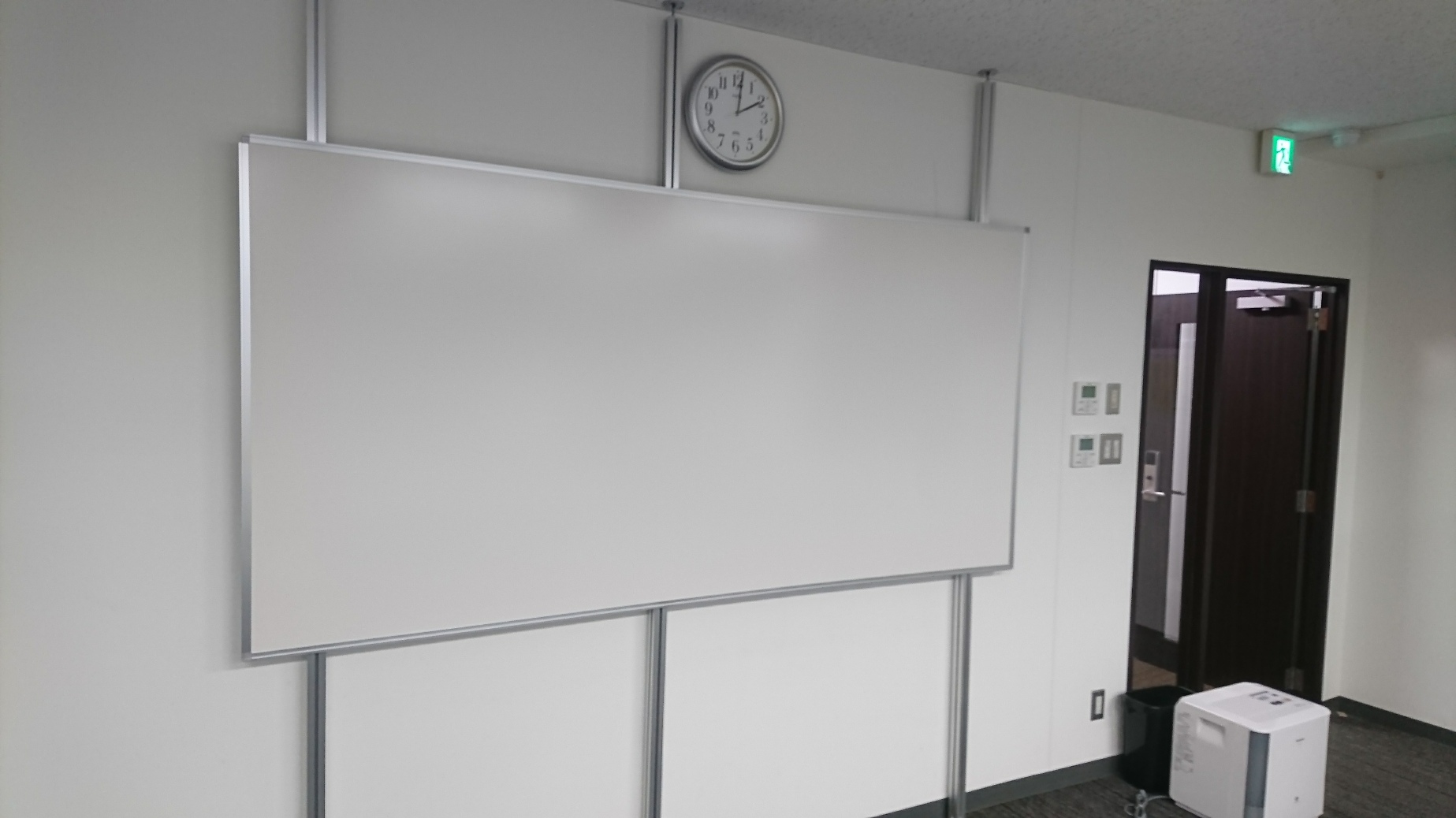 スタンダードな平面ホワイトボードを設置。 無地のほか、暗線入り・映写兼用タイプがございます。 |